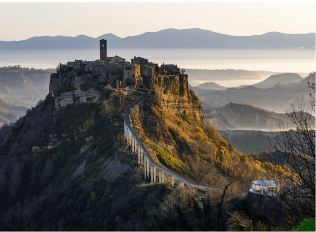 天空之城(Civita di Bagnoregio):位于罗马、佛罗伦斯之间,托斯卡尼边缘的「白露里治奥(Civita di Bagnoregio)」,也就是宫崎骏动画中《天空之城》的原型,据说,每当山岚缭绕,山城宛如飘在空中那种飘缈、仙境感,而有了「天空之城」之称。